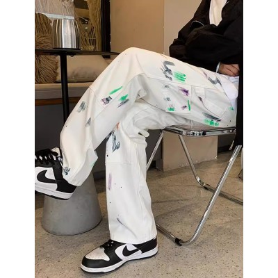 Men's personalized and fashionable stretch fabric denim straight leg pants