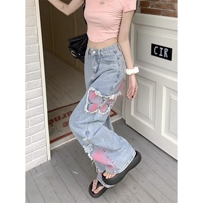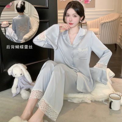 Female trumpet sleeve ice silk set with lace back, butterfly sweet princess style home outfit